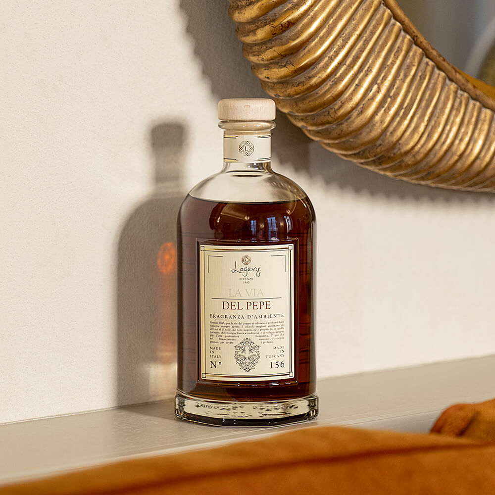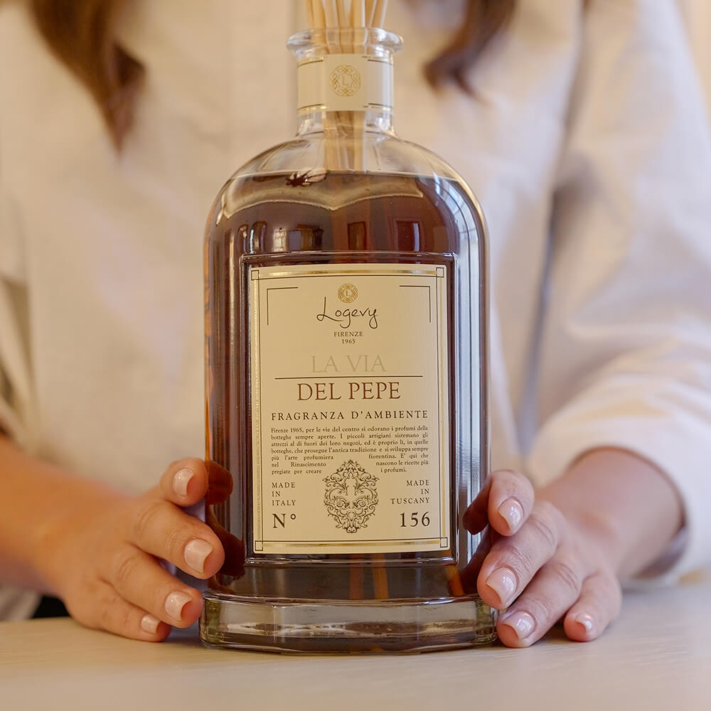 A luminous and spicy fragrance that opens with vibrant citrus and evolves into a heart of black and pink pepper. The woody and musky base notes impart elegance and depth, evoking a sensory journey that combines freshness and character in perfect Florentine style.